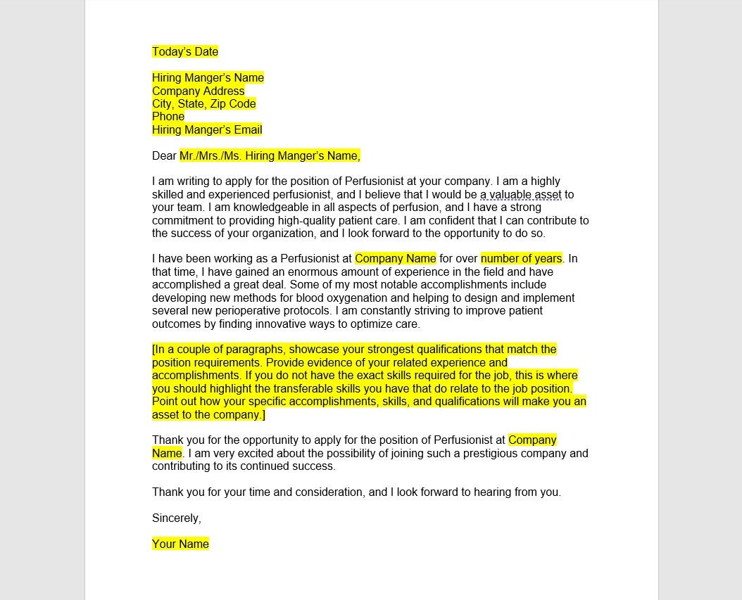Perfusionist Cover Letter Cover Letter Template Editable Cover Letter Cover Letter Template Word Template Simple Template Etsy